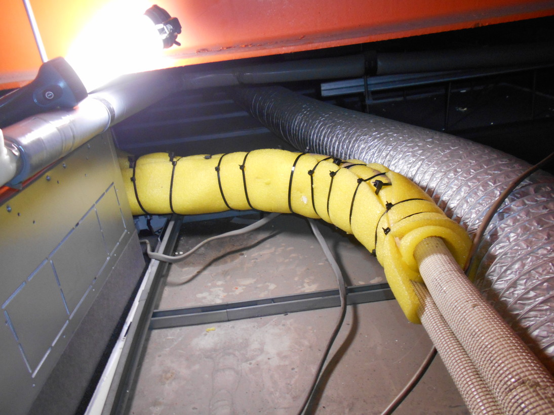 冷媒管の断熱材がズレて銅管が剥き出しになっています。