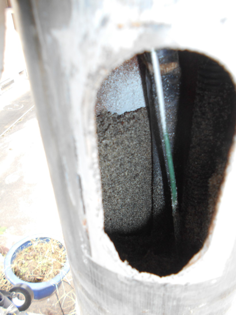 ポールの中にワイヤースチールを入れて探ってみましたが水は溜まってなさそうです。