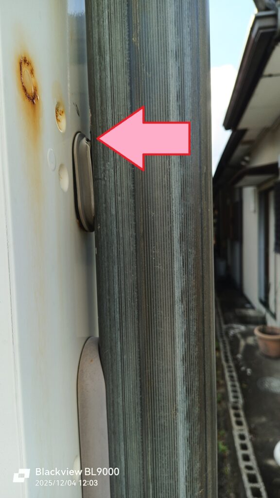 (本来、ポールに赤枠の穴が開いているはず・・)