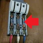 (蓋をあけたところ、赤い矢印のところが銅爪ヒューズです)